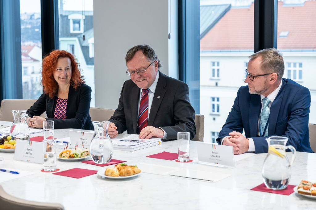 Prezident NKÚ a EUROSAI Miloslav Kala se v pondělí 22. ledna 2024 sešel v novém sídle NKÚ se šéfem Národního kontrolního úřadu (NAO) Spojeného království Garethem Daviesem, který do Prahy zavítal při příležitosti úvodního jednání nově zřizované projektové skupiny EUROSAI s názvem „Odolnost a připravenost“ (Resilience & preparedness).