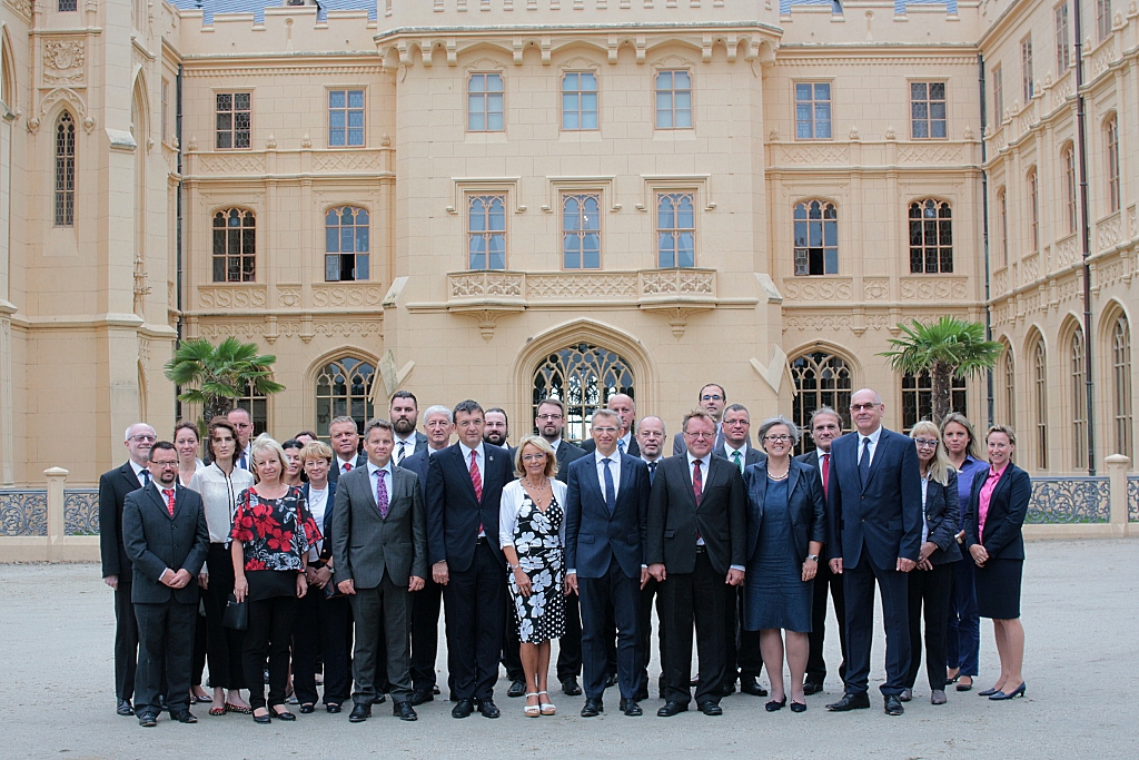 • Schůzka V4+2: společný snímek před zámkem LedniceSchůzka V4+2: společný snímek před zámkem Lednice