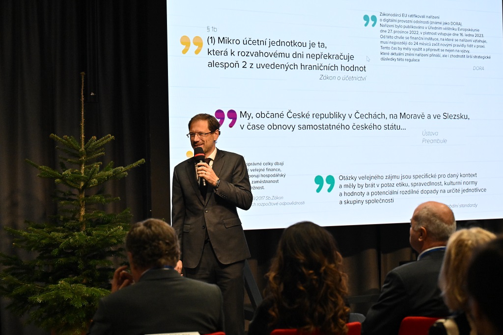 Představené novely či návrhy zákonů by měly vést ke zlepšení hospodaření státu, k využívání dat, ochraně informací a efektivnějšímu předcházení kybernetickým útokům. Mluvčími byli vrchní ředitel sekce Daně a cla Ministerstva financí (MF) Stanislav Kouba (hovořil o chystané novele zákona o účetnictví), vrchní ředitel sekce Finančního řízení a auditu MF Jiří Fojtík (představil návrh nového zákona o řízení a kontrole veřejných financí), místopředsedkyně metodické rady Svazu účetních ČR Simona Pacáková (představila nový zákon o účetnictví a v té souvislosti pohovořila o klíčových očekáváních účetní profese) a prezident Komory auditorů ČR Ladislav Mejzlík (hovořil o projektu ESAP, který řeší centralizaci rejstříků na evropské úrovni, a jeho vliv na správu auditorské profese). O kybernetické bezpečnosti v souvislosti s auditem na konferenci promluvil Jiří Diepolt z Rady pro veřejný dohled nad auditem. První viceprezident KA ČR Milan Bláha přítomné seznámil s tím, jak si auditoři vedou na mezinárodním poli.