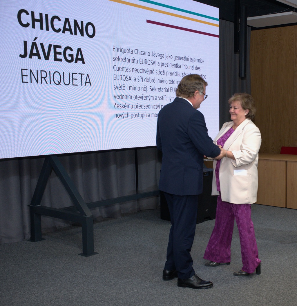 The award was also presented to Enriqueta Chicano Jávega, President of the Supreme Audit Institution of Spain, for her significant contribution to the successful and smooth running of the Czech Presidency of EUROSAI from 2021 to 2024. According to Kala, the EUROSAI Secretariat under her leadership was an open and supportive partner that helped the Czech Presidency with the implementation of new procedures and modernisation elements.