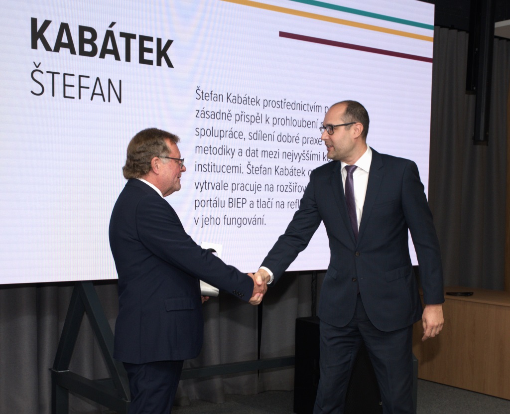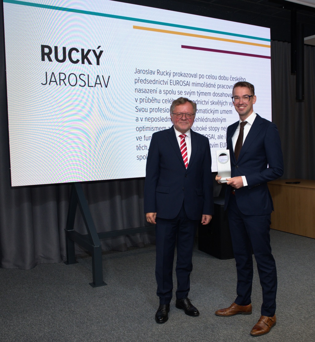Jaroslav Rucký, an employee of the SAO's International Department, was awarded for his successful leadership of the Czech EUROSAI Presidency team, especially for his exceptional work commitment and for achieving excellent results together with his team throughout the entire Presidency. In addition to Rucký's professionalism, Kala also praised his diplomatic skills and his unmistakable optimism. The second of the Office's staff to be awarded was the Director of the Performance Audit Department, Štefan Kabátek. He received the award for the creation and development of the BIEP portal, thus making a major contribution to deepening international cooperation, sharing good practice and sharing methodology and data among Supreme Audit Institutions.